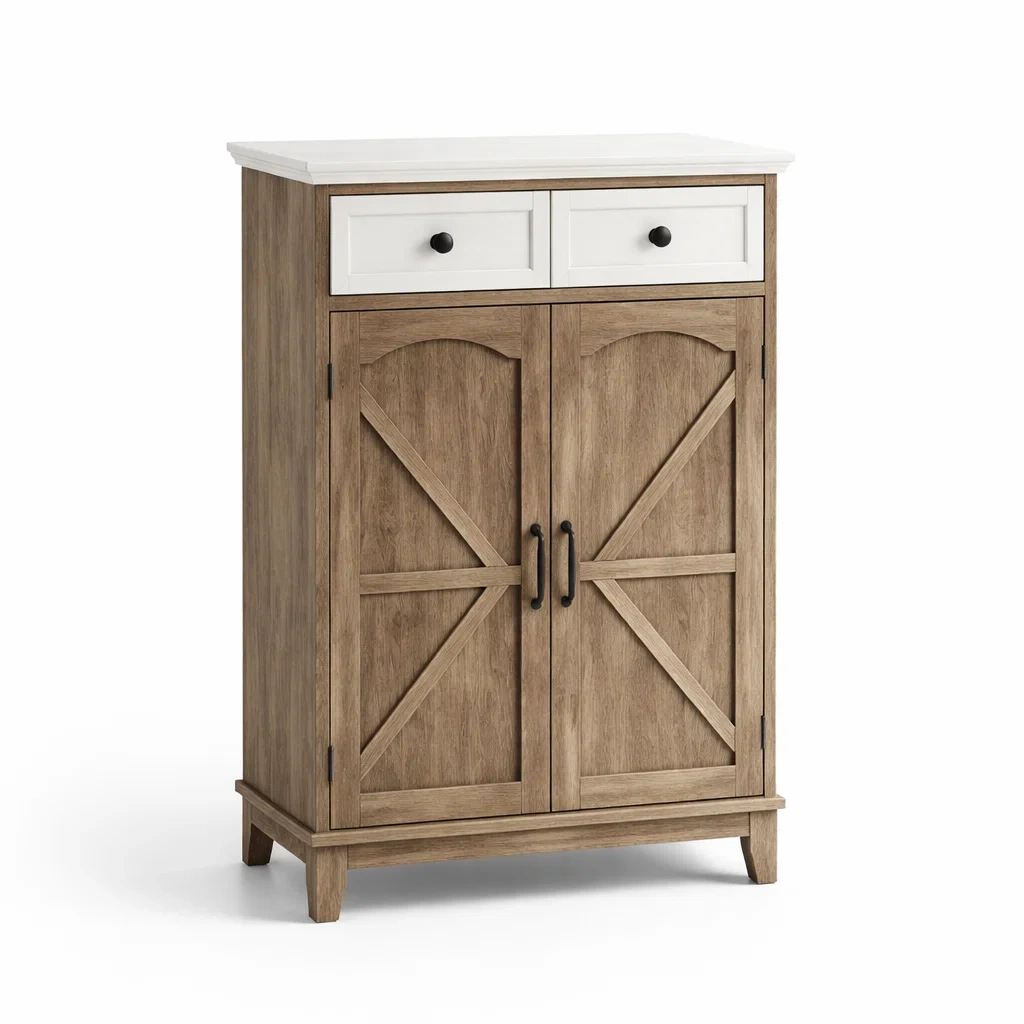 Buffet bois mdf avec plateau blanc et deux tiroirs